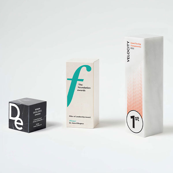 Our Stone Totem collection offers a modern, minimalist award available in three distinctive natural stones—White Marble, Black Marble and Limestone—and in three versatile sizes, allowing you to create meaningful recognition with timeless, elemental materials.